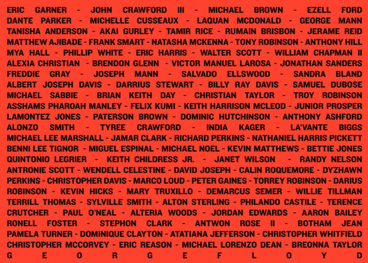 It started with a post by NPR's Code Switch a few days after George Floyd was lynched, which contained “a (very non-comprehensive) list of names of black folks killed by the police since Eric Garner’s death in 2014”. (continued below)